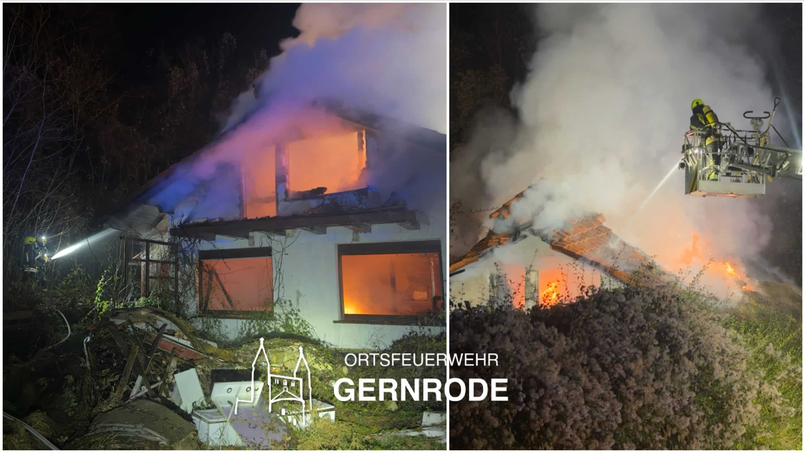 Am 22.11.2025 um 22:39 Uhr wurden wir zu einem Gebäudebrand im Gipshüttenweg alarmiert. Bereits im Gerätehaus erreichten uns Rückmeldungen mehrerer Kameradinnen und Kameraden, dass das leerstehende Gebäude bereits in Vollbrand stand.