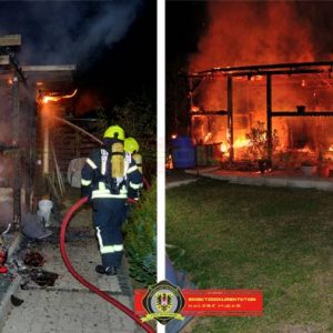 In der Gartenanlage Taubenbreite stand aus bislang unbekannter Ursache eine Laube in Flammen.